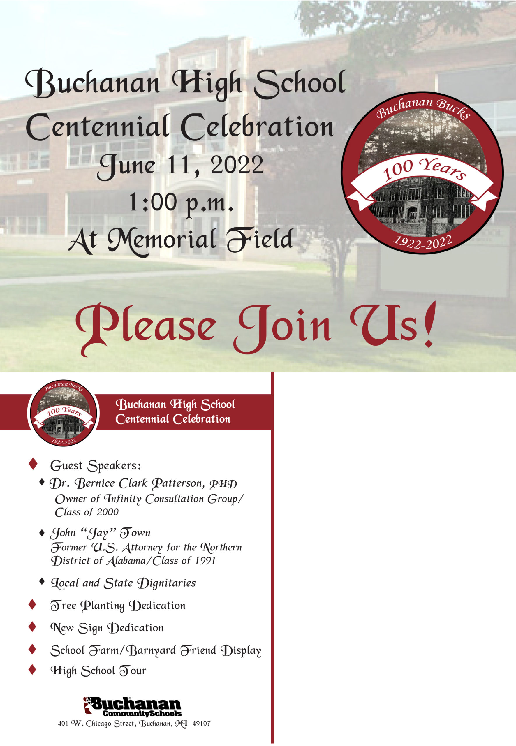 Buchanan High School Centennial Celebration – Join us June 11th!